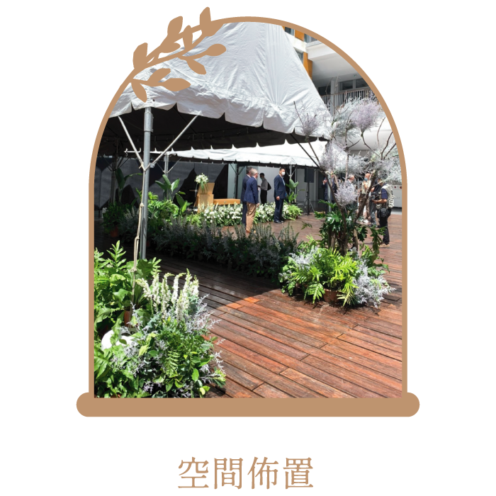 婚宴會館佈置、新店開業佈置、店面植物牆佈置、生日宴會佈置…各式活動佈置,依您所需,展現花藝之美