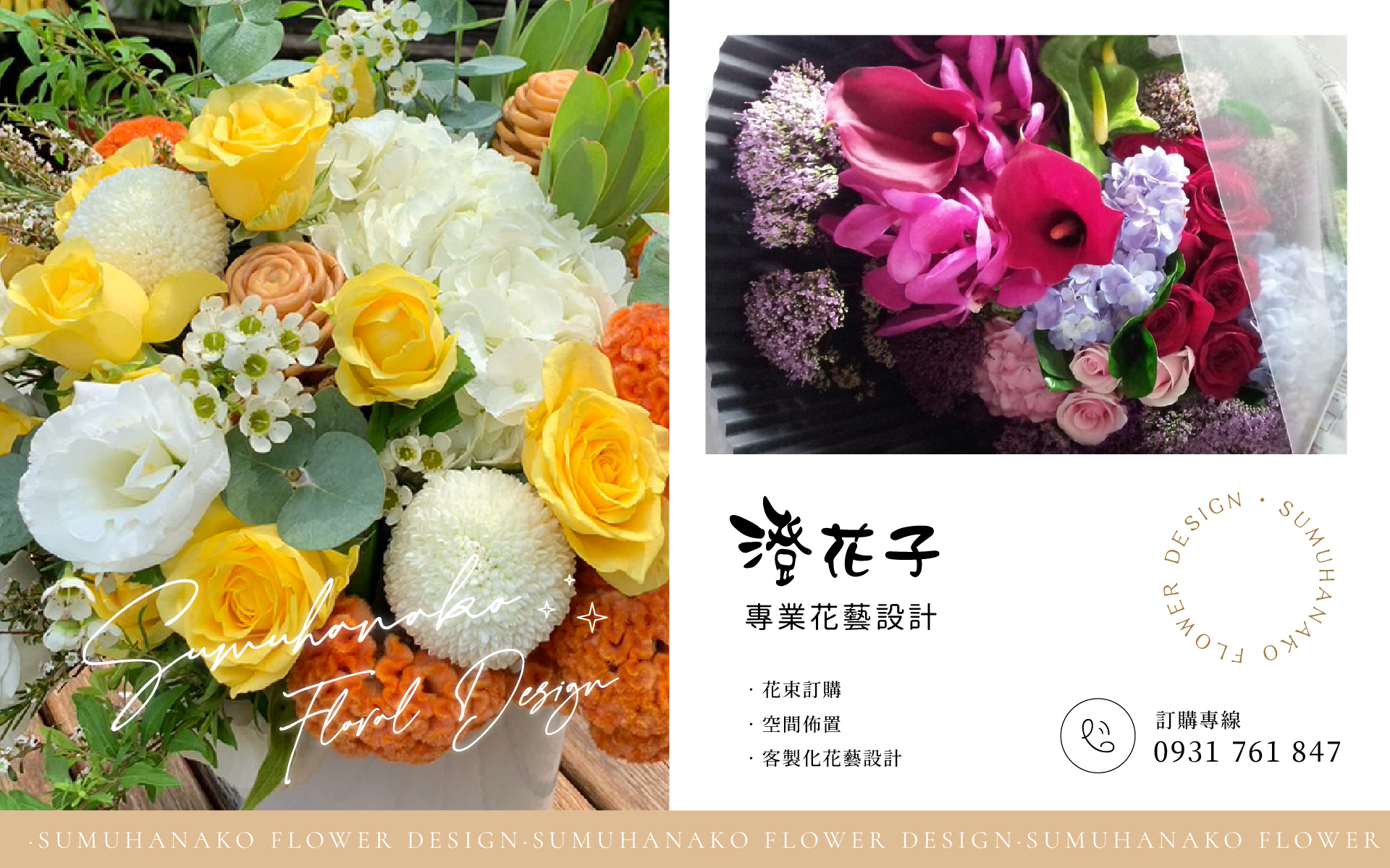 澄花子花工作室有30年的花藝經驗無論是各種花束、各式花禮;還是會場安排、空間佈置、演唱會花籃花架...都可以為您提供客製化服務,我們全台各地除了有外送服務,也都有承接各種會場規劃及佈置,高雄花店鼓山花店、左營區花店、巨蛋周邊花店、高鐵周邊花店